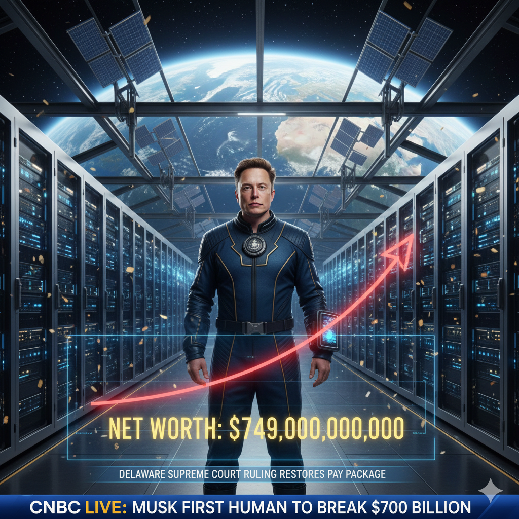 WILMINGTON, DE – December 21, 2025 – Elon Musk has officially become the first human in history to surpass a net worth of $700 billion, reaching a staggering $749 billion late Friday evening. The unprecedented surge in wealth follows a landmark ruling by the Delaware Supreme Court, which fully reinstated Musk’s 2018 Tesla compensation package, previously voided by a lower court.